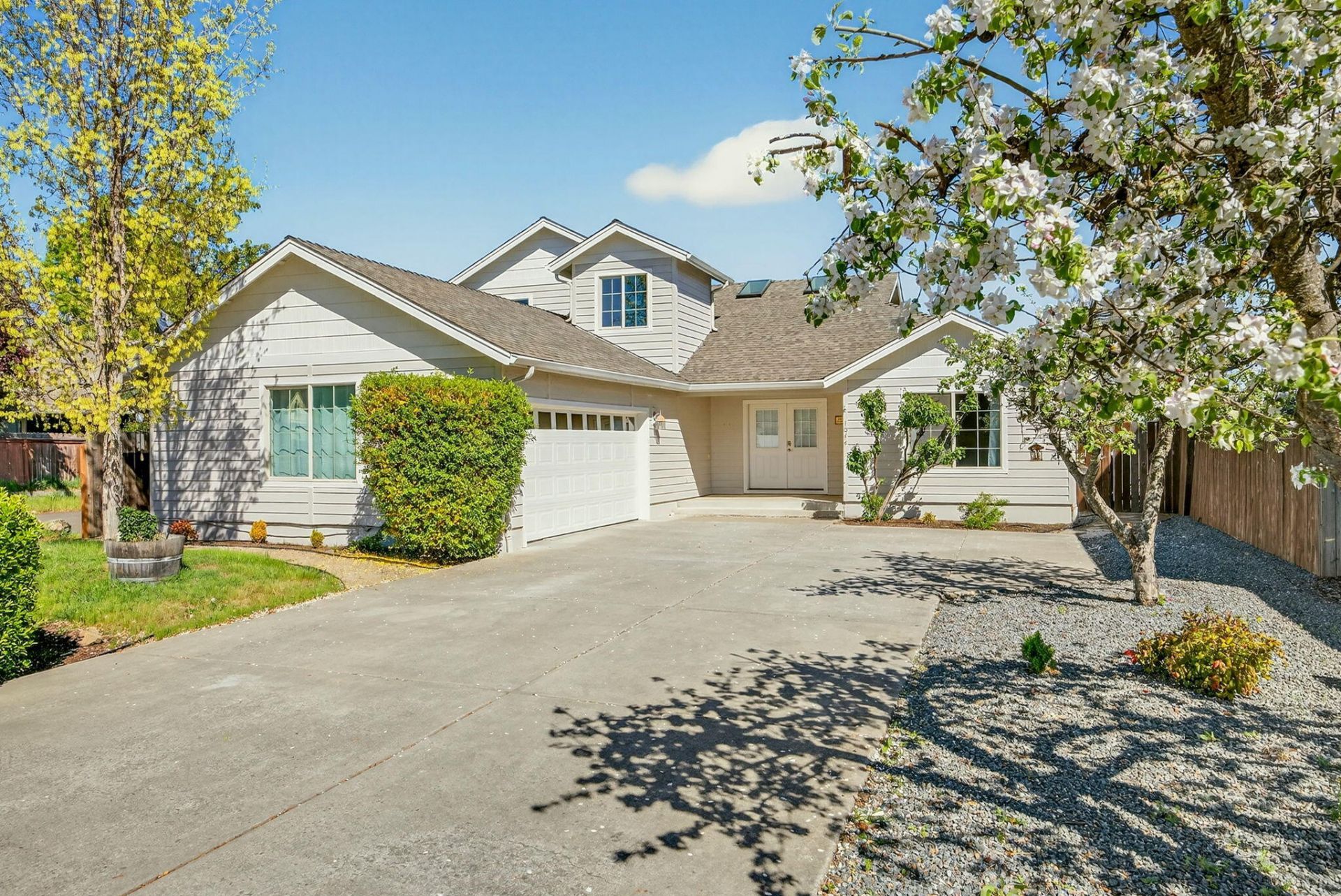 Beautifully updated and move-in ready, this 4-bedroom, 2.5-bath home offers 2,056 sq ft of comfortable living in a desirable Eagle Point location. Vaulted ceilings and abundant natural light welcome you into the inviting living room with a cozy gas fireplace--perfect for relaxing or entertaining. The updated kitchen features quartz countertops, abundant cabinetry, generous prep space, a gas range, and pantry. The main-level primary suite offers convenience and privacy with a walk-in closet and walk-in shower. Upstairs bedrooms provide flexible space for family, guests, or a home office. An oversized laundry room adds extra storage. Enjoy a fully landscaped, newly fenced yard--ideal for pets or gatherings. Finished 2-car garage with EV charging. Close to schools, parks, and amenities--this well-maintained home is a must-see.