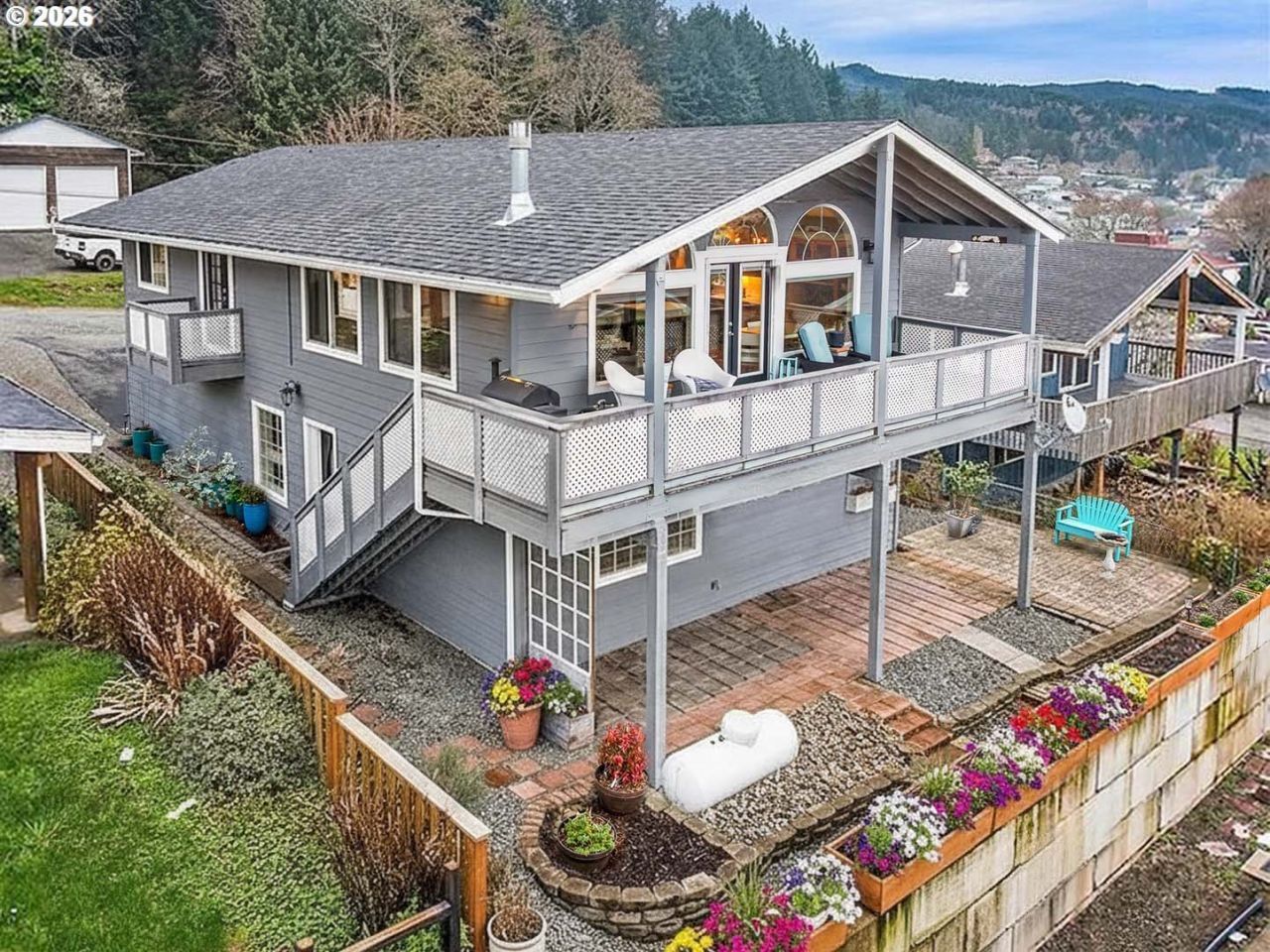 Tillamook Bay Views with breathtaking sunsets, sunrises and an abundance of natural light in every room, thanks to the home's south-facing orientation! The bright, open floor plan includes dedicated office space, making it ideal for working from home or studying in comfort and a view! Originally built in 2006, this home has seen numerous updates that seamlessly blend modern conveniences with enduring quality. It offers three comfortable bedrooms, providing plenty of space for family, guests, or hobbies, along with 2.5 well-appointed bathrooms that ensure convenience and privacy for everyone. There is a spacious master bedroom featuring luxurious, oversized en suite bathroom features premium finishes, while the walk-in closet provides ample room for storage and organization. Enjoy the outdoors year-round on the large, covered deck-an inviting space for dining al fresco or simply taking in the scenic views. Inside, rich hickory hardwood floors add warmth and elegance throughout the living areas, complemented by a cozy gas fireplace that creates an inviting atmosphere. The stylish kitchen is equipped with modern quartz countertops, a large island featuring a Kitchen Aid gas downdraft stove, quality DeWils custom cabinets, and a convenient main-floor laundry room to simplify daily routines. The landscaping is low-maintenance yard, perfect for relaxing or entertaining guests outdoors. Additional features include an oversized two-car garage and a paved driveway, offering plenty of space for vehicles and storage. Every detail of this home has been thoughtfully designed for comfort, functionality, and style. Electrical box has generator switch installed for ease of generator connection. A new roof and gutters were installed in preparation for marketing. The home in front is being 100% remodeled inside and out currently. Seller is a licensed broker real estate broker in the state of Oregon. Zoning does not allow short term rentals.
