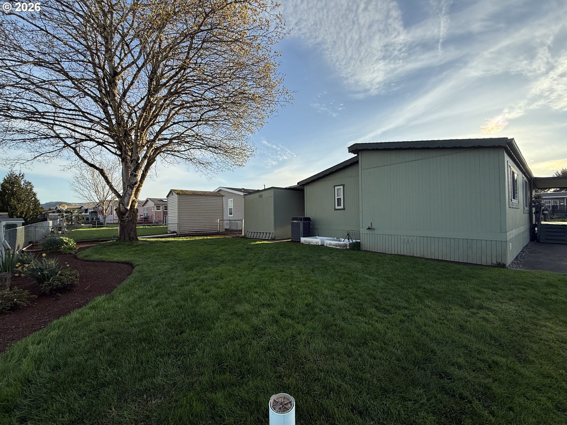 Welcome home to Springlake. This 3 bedroom, 2 bath home has all the amenities to accommodate comfort and functionality. All on a corner lot. Covered Porch Entry. Updated throughout the home within the last couple years. Plush wall to wall carpet throughout living area. Primary bedroom with direct access to full bathroom with updated flooring and vanity. Formal dining room with cabinets for storing and displaying. Unique chandelier with fan controlled by remote. Kitchen with updated cabinetry, countertops, tile backsplash and sink. Skylight in kitchen for natural light. All kitchen appliances included. Vinyl Windows. Laundry room with updated matching washer/dryer also included. Updated Trane furnace and air conditioning for temperature comfort year round. Main bathroom updated with new flooring and vanity. Lots of space for storage. Fenced side yard with direct access to storage shed adjacent to carport. Direct entry into home from carport via ramp. Remote access for automatic blinds in living space for controlling the outside light at ease. All furnishings can be negotiated. Subject to park approval. $16,000 Buy in included. Call for appointment to view.