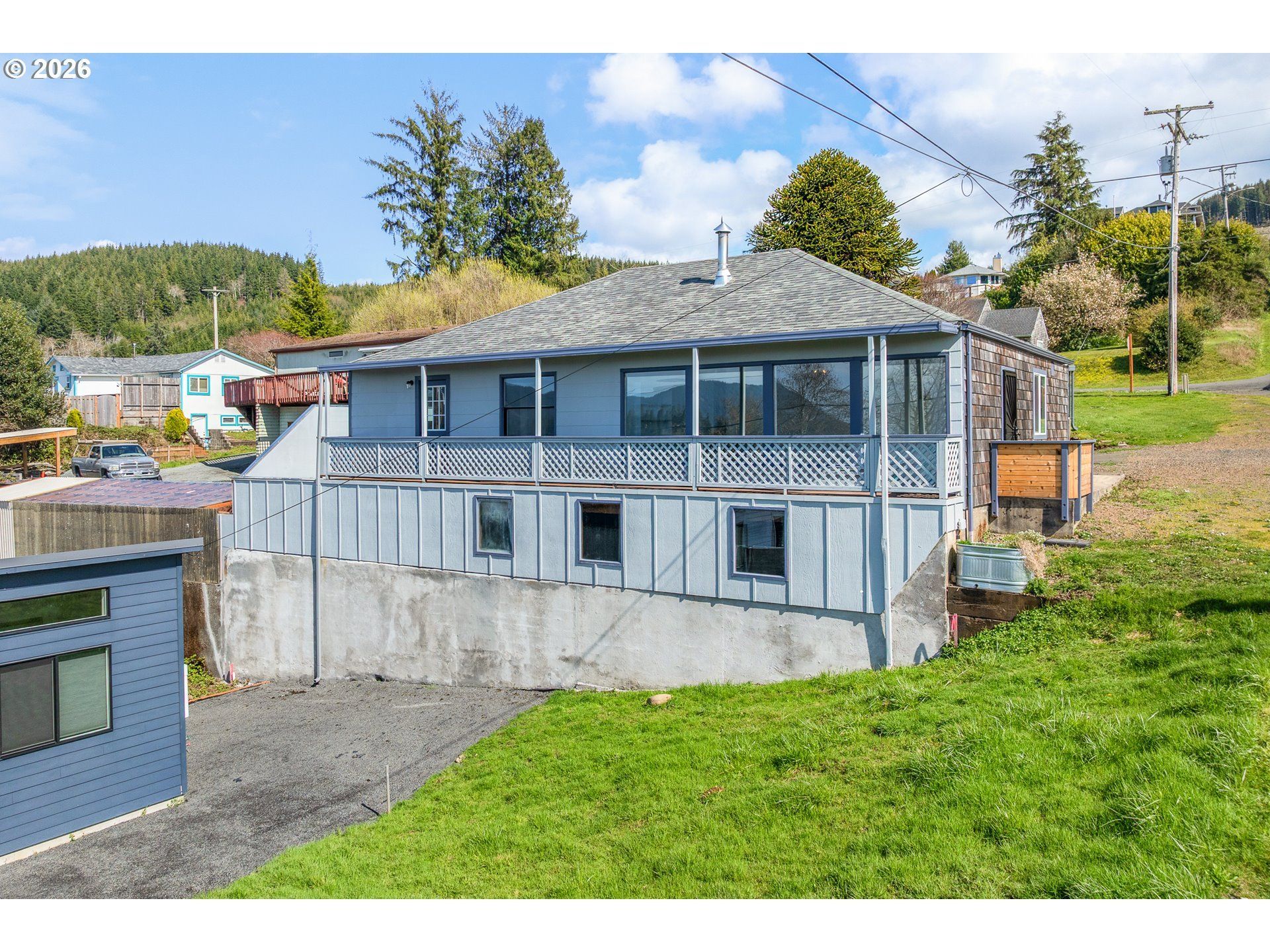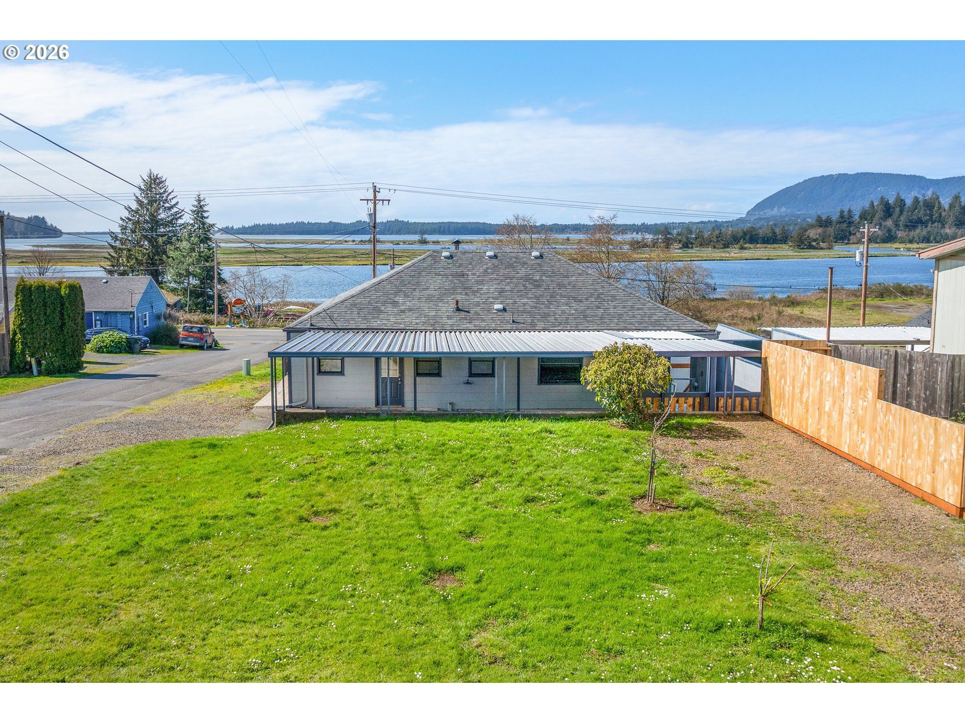 Coastal Getaway with spectacular views of the Nehalem Bay/River. Only two blocks from the boat docks. This cute coastal home has 2 bedrooms & 1 full bathroom. Extra room for an office with access to the open porch to enjoy the million dollar views. Large carport for parking. Large yard with fruit bearing trees. Extra storage in the basement. Fresh exterior/interior paint throughout. Easy to show! Come take a look!